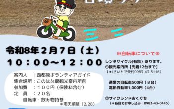 西都原ガイダンスセンター このはな館 2026.01.27 【このはな館】節分まめまき大会開催のお知らせ 西都原ガイダンスセンターこのはな館では2月1日(日)に節分の伝統行事であるまめまきのイベント『... 西都市観光協会 2026.01.20 【日本遺産】新商品開発セミナー 「日本遺産商品を“選ばれる商品”にするPRと販売戦略」 のご案内 日本遺産南国宮崎の古墳景観活用協議会よりお知らせです。 日本遺産南国宮崎の古墳景観活用協議会では... 西都市観光協会 2026.01.20 【特別史跡公園西都原古墳群】星空観察会 特別史跡公園西都原古墳群からのお知らせです。 西都原は周辺に灯りが少なく、夜空が非常に綺麗に見... 西都市観光協会 2026.01.20 【NPO法人iさいと】自転車で巡るこの時期だけの絶景古墳ツアー 特定非営利活動法人iさいとからのお知らせです。 冬の西都原は澄み渡る空、広々とした草原、その草原... 西都市観光協会 2026.01.19 「第3回 くるまの祭典 in 西都原」開催のお知らせ 10時から西都原ガイダンスセンターこのはな館駐車場にて開催します。 珍しい車や懐かしい車がこのは... 西都市観光協会 2025.12.26 『まるっと協働!地域もりあげ塾in西都・児湯地域』を開催します! みやざきNPO・協働支援センターからのお知らせです。 人口約200人の小さな地域、東米良。高齢化... 西都市観光協会 2025.12.24 【日本遺産】第2回 日本遺産サイクリング 蓮ヶ池横穴群・生目古墳群 CYCLING TOUR 2026 特定非営利活動法人輪プロジェクトみやざきよりお知らせです。 「第2回 日本遺産サイクリング 蓮ヶ... 西都原ガイダンスセンター このはな館 2025.12.22 西都原ガイダンスセンターこのはな館 年末年始営業のご案内 平素は格別のお引き立てを賜り厚く御礼申し上げます。年末年始の営業についてご案内させていただきます... 西都原ガイダンスセンター このはな館 2025.12.22 西都原ガイダンスセンターこのはな館 臨時休業のご案内 誠に勝手ながら施設点検工事のため下記期間を休業とさせていただきます。 2026年1月26日(月)... 西都市観光協会 2025.12.16 第21回 西都原このはなマラソン大会 春の訪れを告げる「西都原このはなマラソン大会」を、今年も下記内容にて開催いたします。日本最大級の... お知らせをもっと見る イベント情報 【日本遺産】新商品開発セミナー 「日本遺産商品を“選ばれる商品”にするPRと販売戦略」 のご案内 【特別史跡公園西都原古墳群】星空観察会 【NPO法人iさいと】自転車で巡るこの時期だけの絶景古墳ツアー 「第3回 くるまの祭典 in 西都原」開催のお知らせ イベント情報をもっと見る フォトアルバム 西都市の天気 西都原ガイダンスセンターこのはな館 グリーンツーリズム スポーツランド ニニギくん&コノハナちゃん 年間イベントカレンダー 体験する 観光パンフレット おいでよ花のまち西都市へ 観光ガイド フードデリバリー西都 動画 【宮崎県西都市PR動画】古代ロマン西都 古代人のモニュメント-南国宮崎の古墳景観-(日本語ショート) Instagram 【第38回西都古墳まつり】たいまつ行 さらに読み込む... Instagram でフォロー Facebook 一般社団法人西都市観光協会