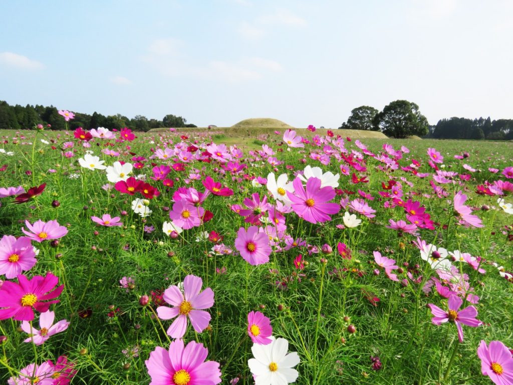 今年は新型コロナウイルス感染症の影響で西都市でも様々なイベントが中止となっていますが、西都原古墳群のコスモスは例年どおり10月下旬から11月上旬に見頃を迎える予想です。
