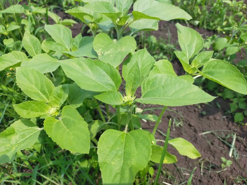 西都原のヒマワリも日当たりが良い場所に比べ、木陰では生育が悪いです。