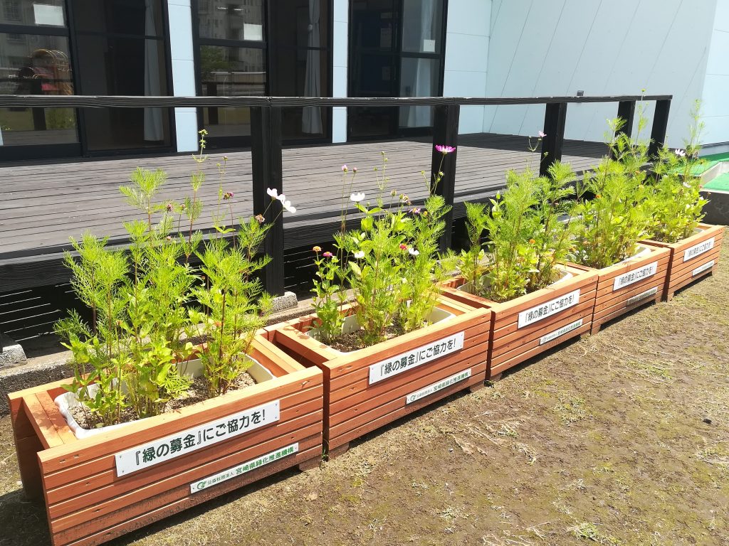 3月下旬に、西都市児童館にて子ども達とたねダンゴをつくり、プランターと児童館内の花壇に植えました。