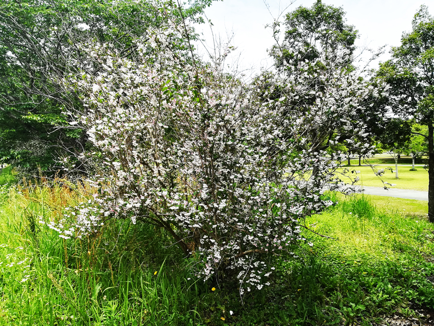 また、西都原運動公園から西都原ガイダンスセンターこのはな館への道沿いには、アジサイ科の植物であるウツギ(旧暦4月「卯月」に咲くことから卯の花とも呼ばれています。)が200本ほど植栽してあります。