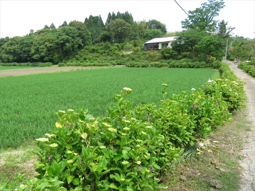 三納地区樫野には約500メートルにわたって約500本のアジサイが同所在住の佐藤さんによって植栽されています。