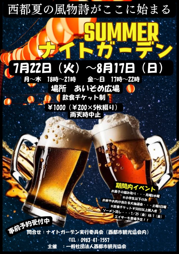 | 主催・お問い合わせ | ナイトガーデン実行委員会(西都市観光協会) TEL 0983-41-1557 |