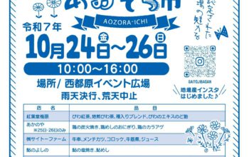 イベント Event 2025.11.01 イベント 第39回 西都古墳まつり開催のお知らせ 今年で39回目の開催となる西都古墳まつり。 西都原古墳群の御陵墓前広場で、11月1日(土)、2日(... 2025.10.26 イベント 【第39回西都古墳まつり】御神火トーチリレー開催のお知らせ 西都古墳まつり実行委員会からのお知らせです。 10月26日(日)、御神火トーチリレーを開催します! ... 2025.10.24 イベント 「秋の西都あおぞら市」開催のお知らせ 西都市地場産業振興協議会からのお知らせです。 西都市地場産業振興協議会主催の物産展イベント「秋の西都... 2025.10.14 イベント 第18回西都三財へそまつり開催のお知らせ 三財へそ祭り実行委員会からのお知らせです。 三財地区では「第18回三財へそ祭り」を開催します。宮崎県... 2025.09.20 イベント 【西都原考古博物館】国際交流展「千年の至芸~台湾宜蘭 漢本遺跡~」 西都原考古博物館からのお知らせです。 西都原考古博物館では、国際交流展「千年の至芸(しげい)... 2025.09.12 イベント 『さいとマチナカマルシェ』開催のお知らせ 「季節を楽しみ 明日の暮らしをつくるマルシェ」をコンセプトに開催される「さいとマチナカマルシェ」。9... 2025.08.13 イベント 宮崎牛(西都市産)の消費拡大イベントの開催について 西都市農畜産物バリューアップ推進協議会からのお知らせです。 宮崎牛の消費拡大を図るため、お得に楽しめ... 2025.08.04 イベント 「第19回 穂北まつり」開催のお知らせ 穂北まつり実行委員会からのお知らせです。 「第19回 穂北まつり」が以下のとおり開催されます。 ... 2025.08.01 イベント 『SAITO サマーナイトガーデン』開催のお知らせ 『SAITO サマーナイトガーデン』は8月17日(日)まで開催期間を延長します。(8月1日) 街中... <12345> ホームイベント フォトアルバム 西都市の天気 西都原ガイダンスセンターこのはな館 グリーンツーリズム スポーツランド ニニギくん&コノハナちゃん 年間イベントカレンダー 体験する 観光パンフレット おいでよ花のまち西都市へ 観光ガイド フードデリバリー西都 動画 【宮崎県西都市PR動画】古代ロマン西都 古代人のモニュメント-南国宮崎の古墳景観-(日本語ショート) Instagram 【第38回西都古墳まつり】たいまつ行 さらに読み込む... Instagram でフォロー Facebook 一般社団法人西都市観光協会