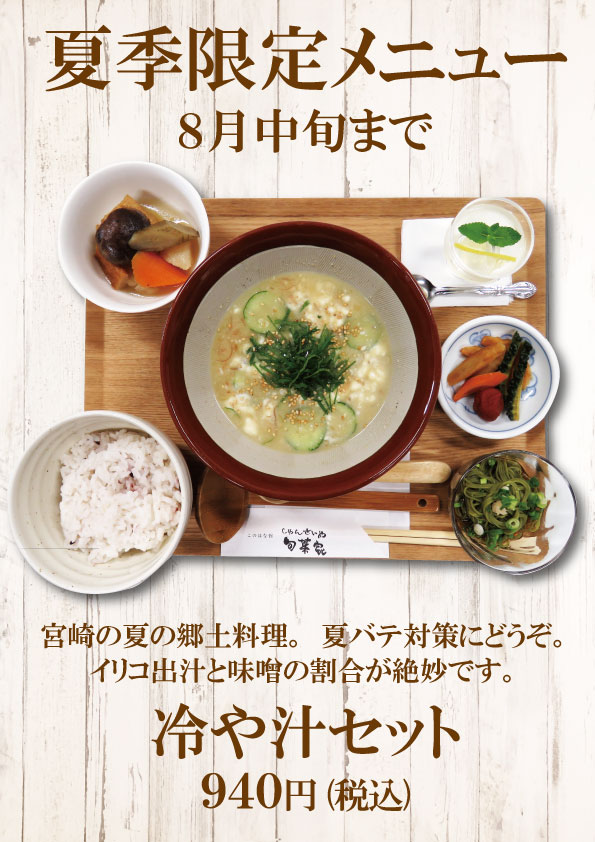 今年も8月中旬までの限定メニューとして冷や汁セットをはじめました。