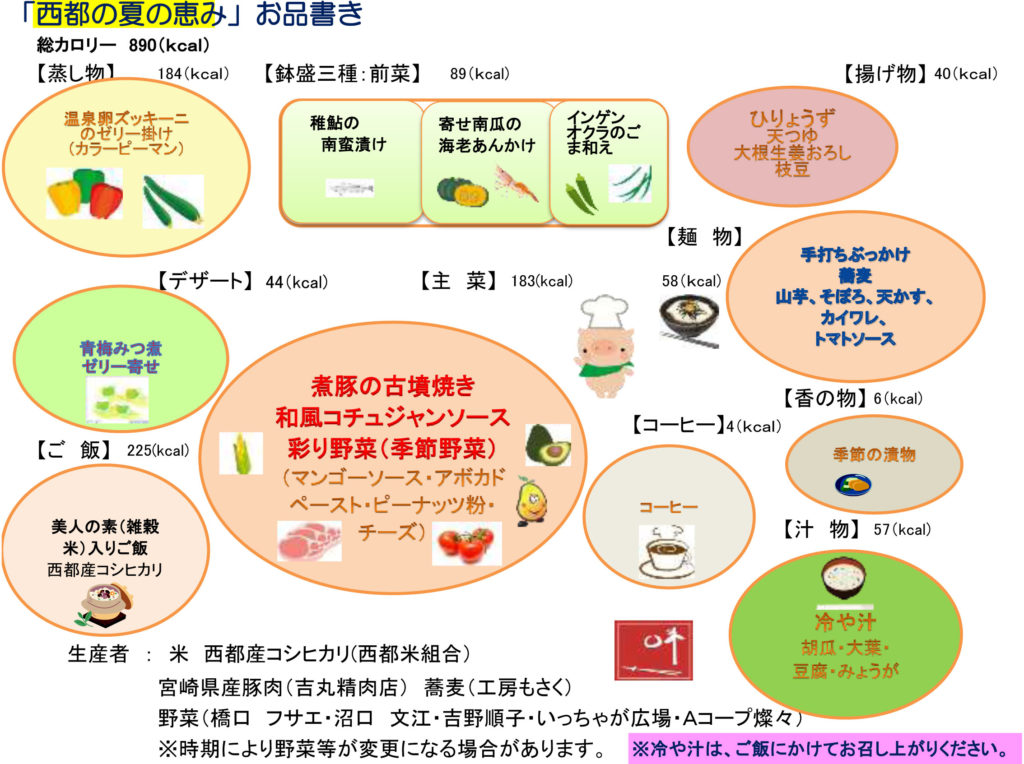 西都原の旬の食材を使用した創作和風料理です。 (890Kcal)
