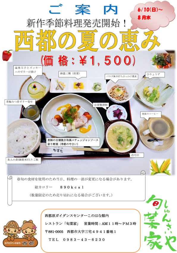 レストラン『旬菜家』では夏だけの限定メニューを6月10日(日)より販売致します。