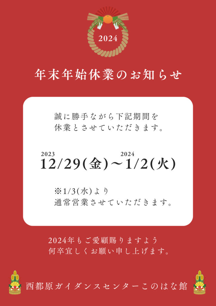 西都原ガイダンスセンターこのはな館 年末年始営業のご案内