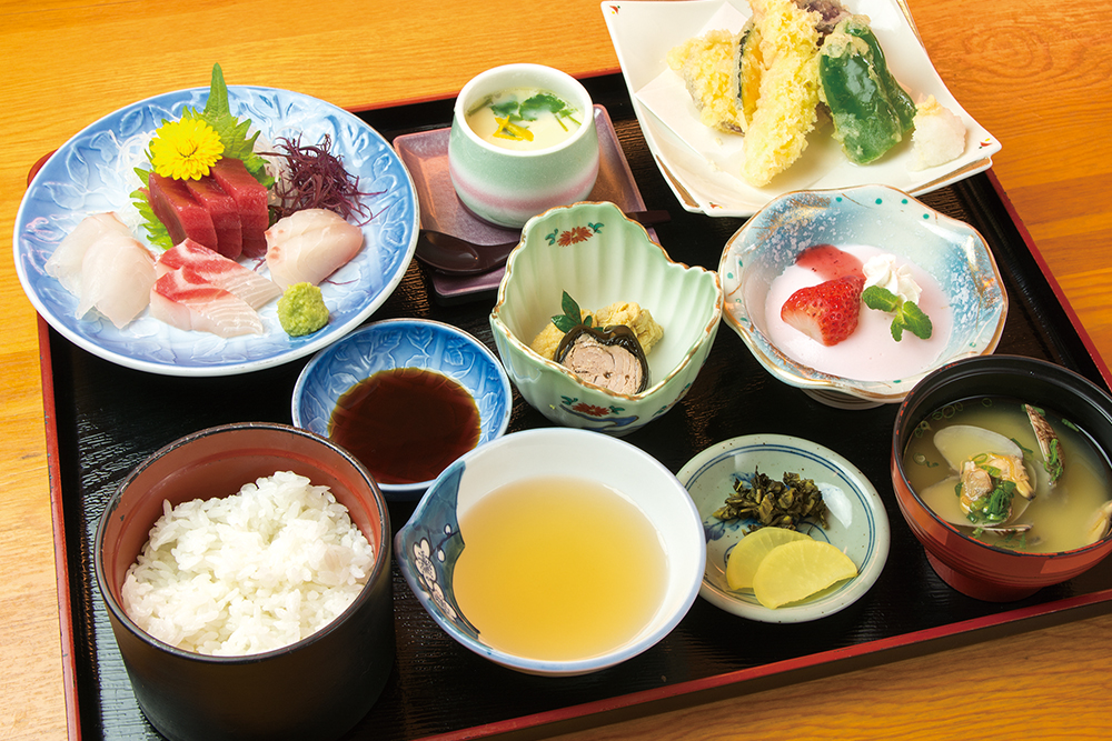 一番人気の「刺身膳(1,620円)」は、目にも鮮やかな品々が並び、心もお腹も満たしてくれます。チキン南蛮、エビフライ、ハンバーグ、デザートに飲み物が付いた「お子様メニュー」も満足度が高い人気メニューです。