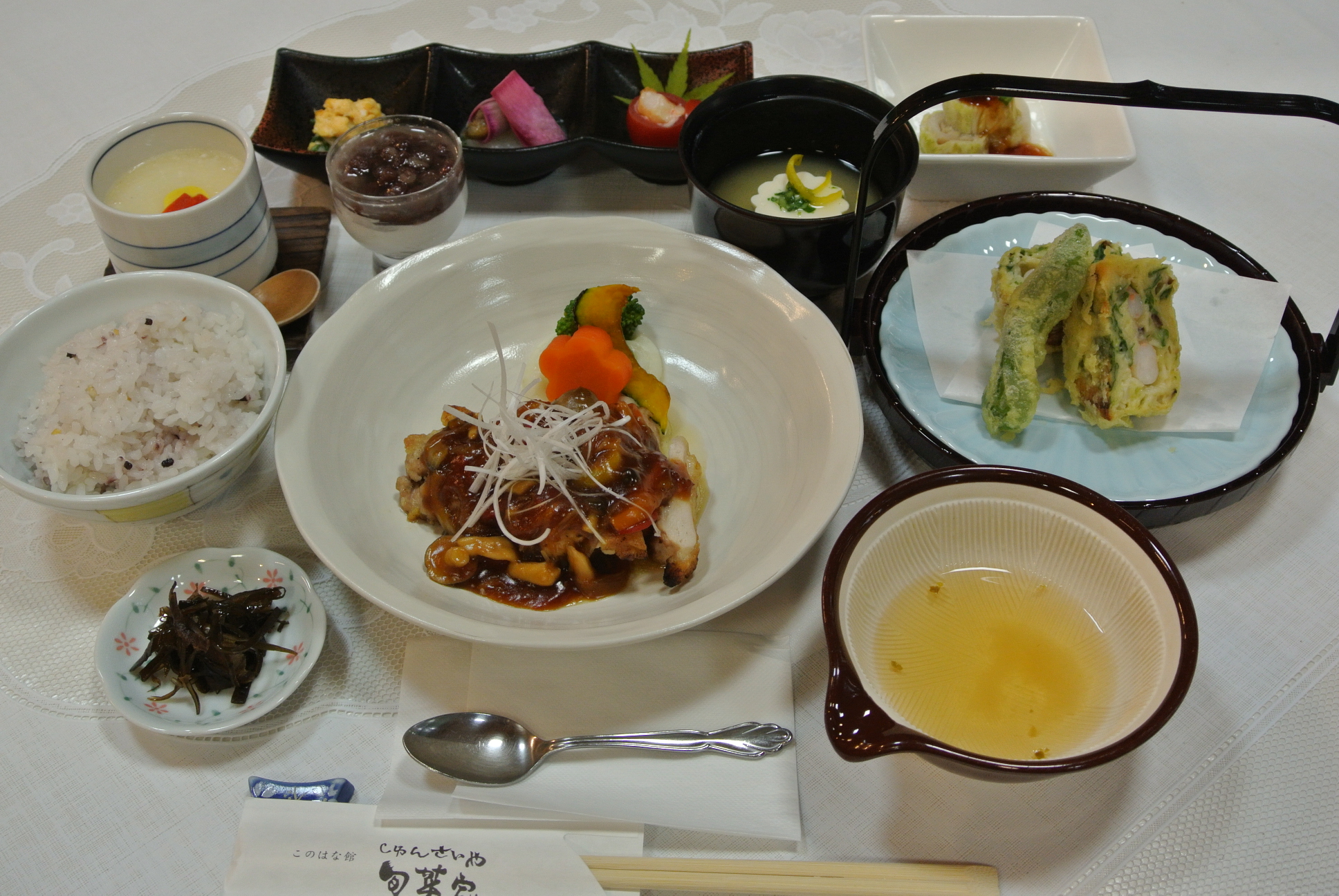 西都の四季折々の食材を使用した看板メニューの「西都の旬の恵み」のほか、西都産ゆずを甘酢にたっぷり使用した「ゆず鶏南蛮(チキン南蛮)」や天ぷらの乗った「和風カレーうどん」も人気。