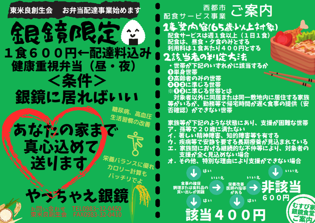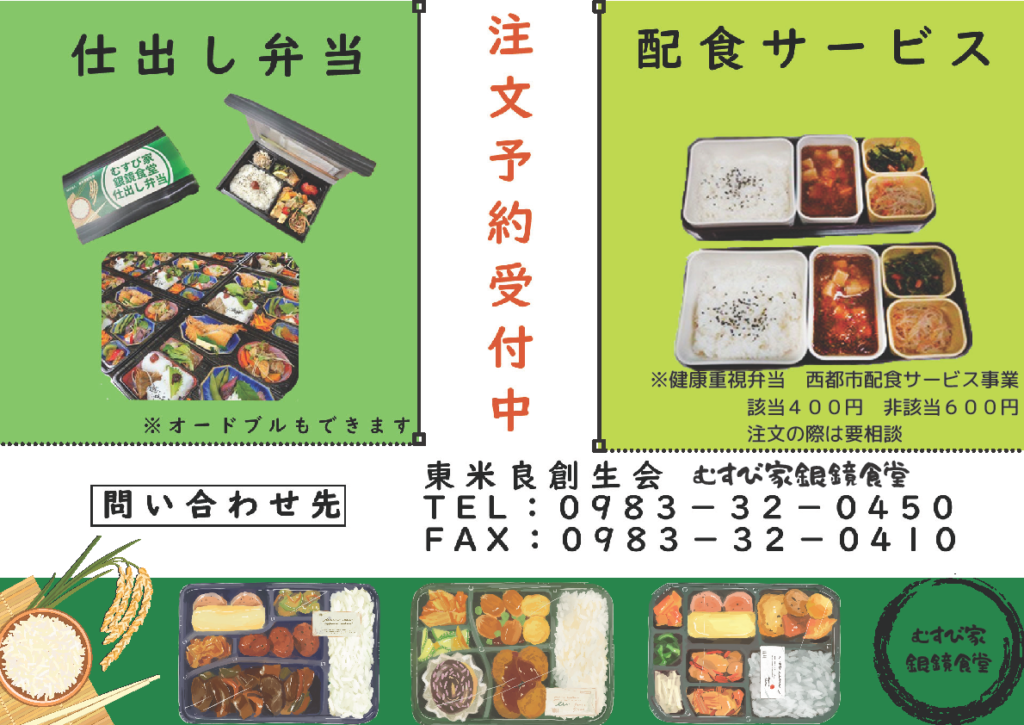 むすび家銀鏡食堂の弁当、仕出し、オードブル承ります。