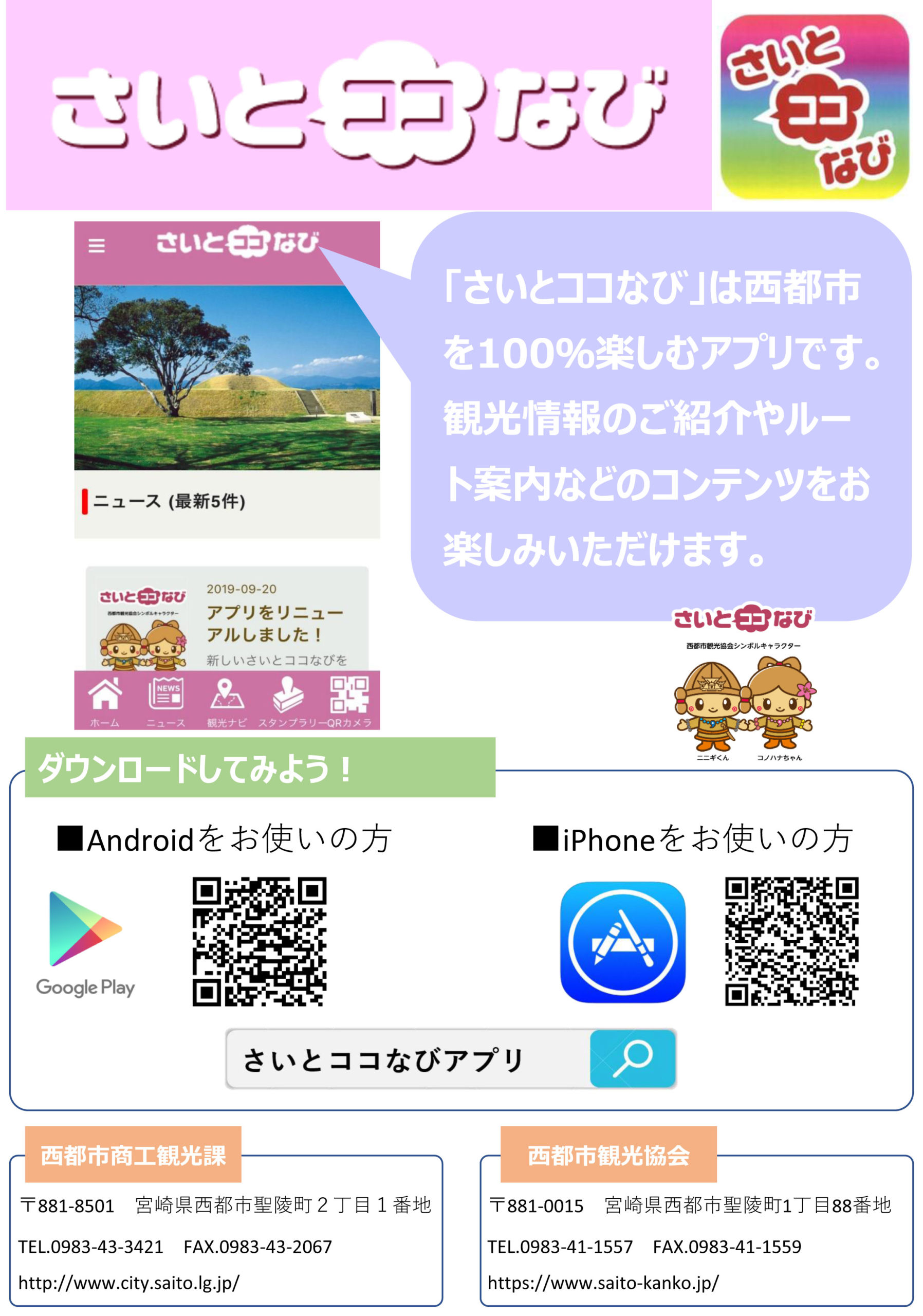 ぜひ、「さいとココなび」をダウンロードして、西都を100%お楽しみください!