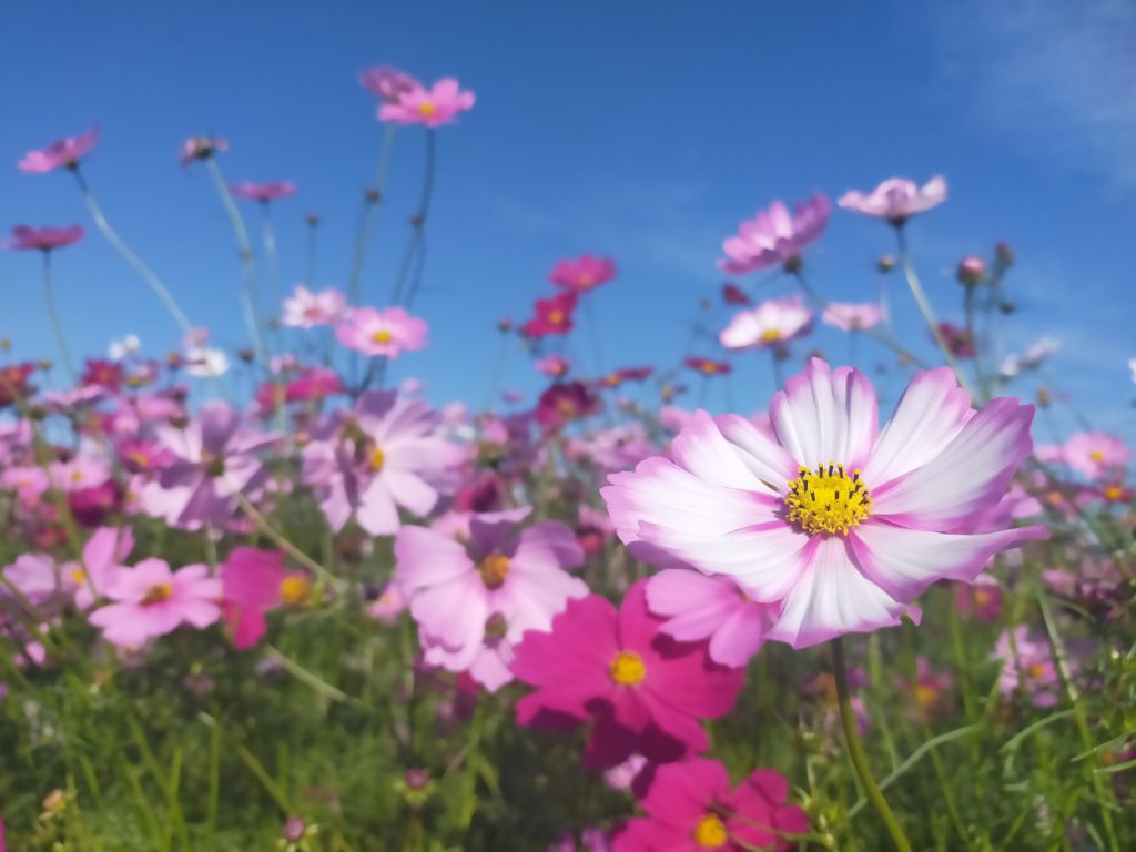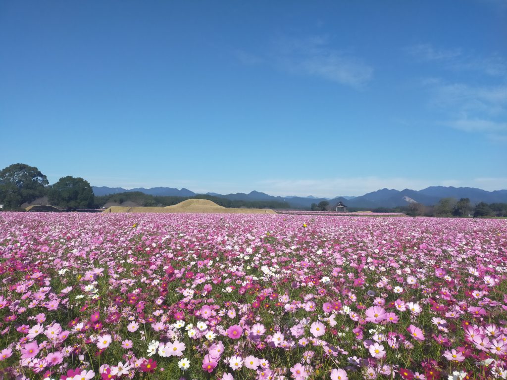西都原古墳周辺に植えられているコスモスも満開で見頃を迎えています。