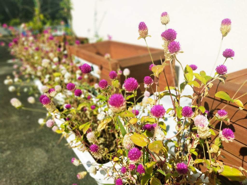 さて、西都市観光協会にありますたねダンゴは、千日紅で彩られています。