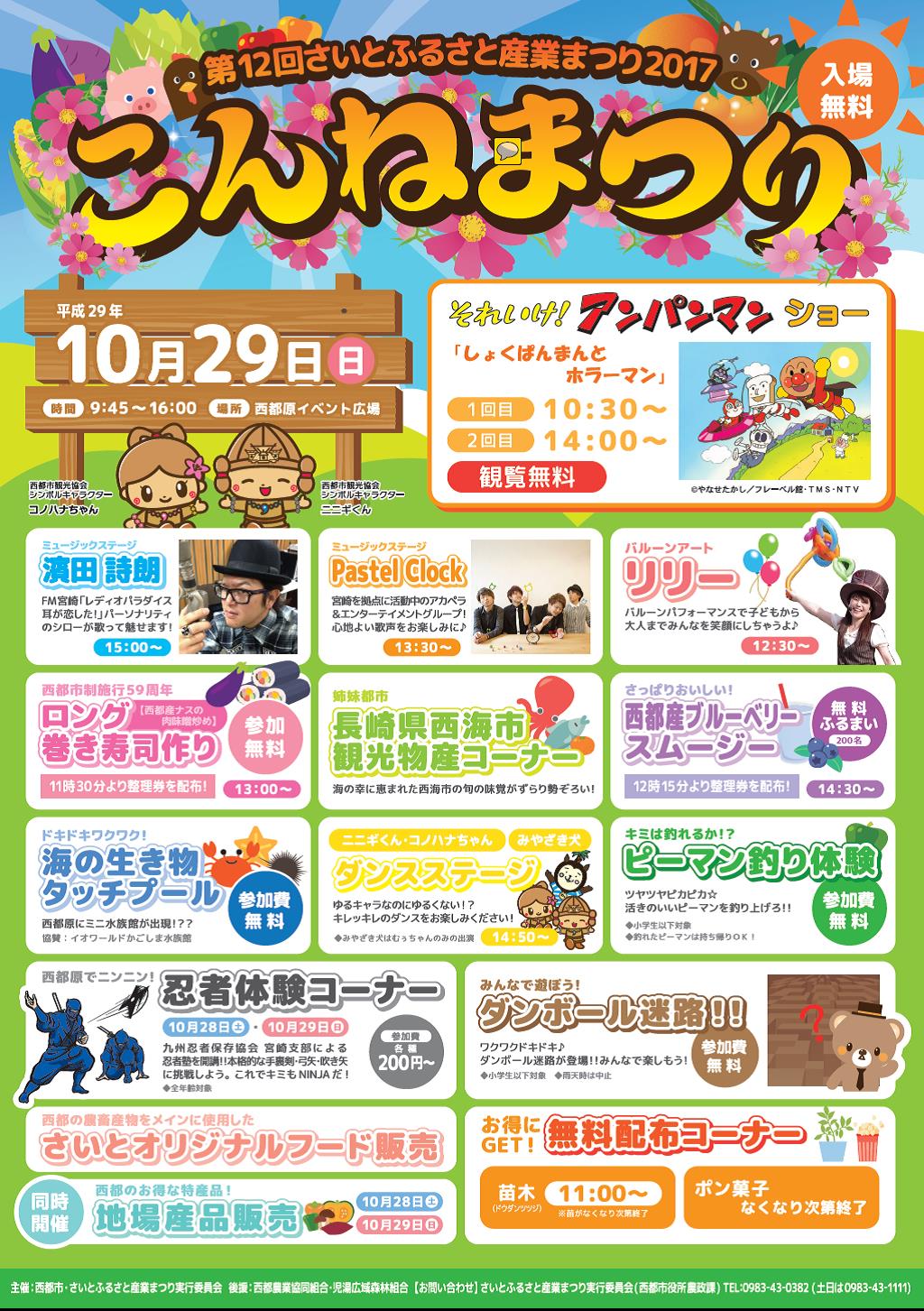 新着情報 第12回さいとふるさと産業まつり “こんねまつり”のお知らせ 2017.10.17 第12回さいとふるさと産業まつりが10月29日(日)に開催されます。 ホーム新着情報第12回さいとふるさと産業まつり “こんねまつり”のお知らせ フォトアルバム 西都市の天気 西都原ガイダンスセンターこのはな館 グリーンツーリズム スポーツランド ニニギくん&コノハナちゃん 年間イベントカレンダー 体験する 観光パンフレット おいでよ花のまち西都市へ 観光ガイド フードデリバリー西都 動画 【宮崎県西都市PR動画】古代ロマン西都 古代人のモニュメント-南国宮崎の古墳景観-(日本語ショート) Instagram 【第38回西都古墳まつり】たいまつ行 さらに読み込む... Instagram でフォロー Facebook 一般社団法人西都市観光協会