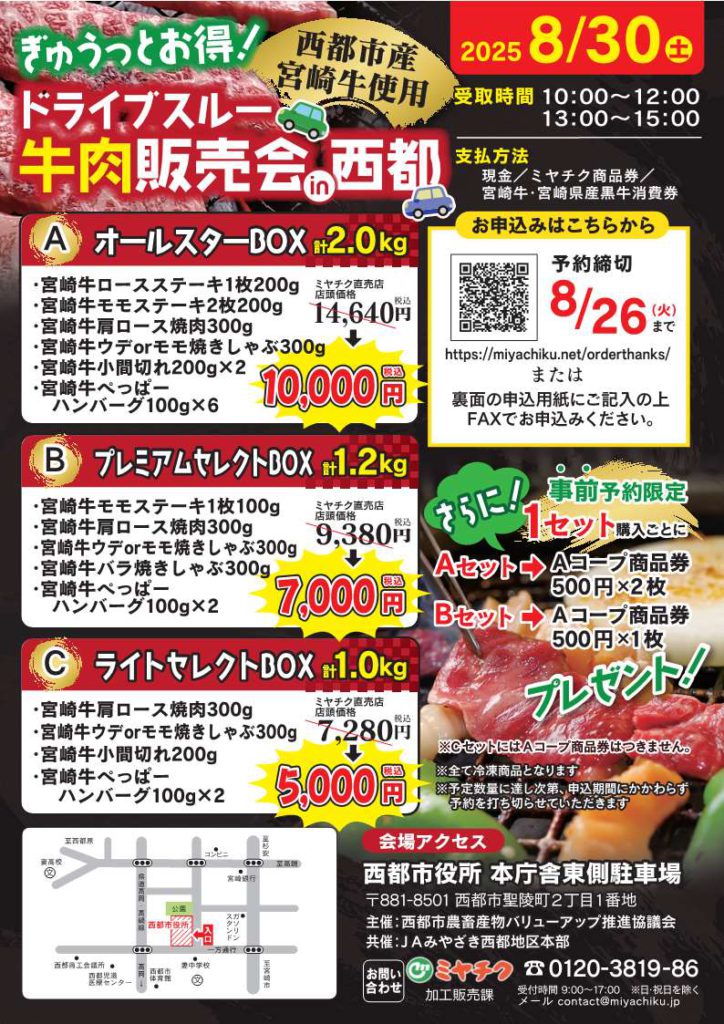 宮崎牛の消費拡大を図るため、お得に楽しめるドライブスルー形式の販売会を開催します!