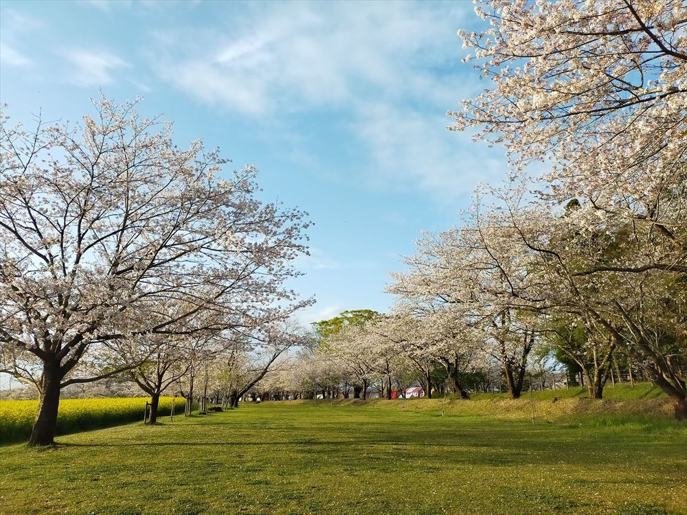 西都原の桜と菜の花は満開で見頃を迎えています。