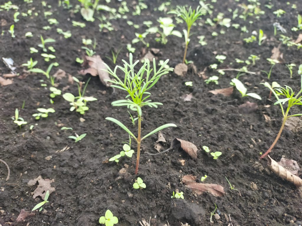 西都原のコスモスは播種が終わり、最初に植えた圃場では発芽を確認しました。