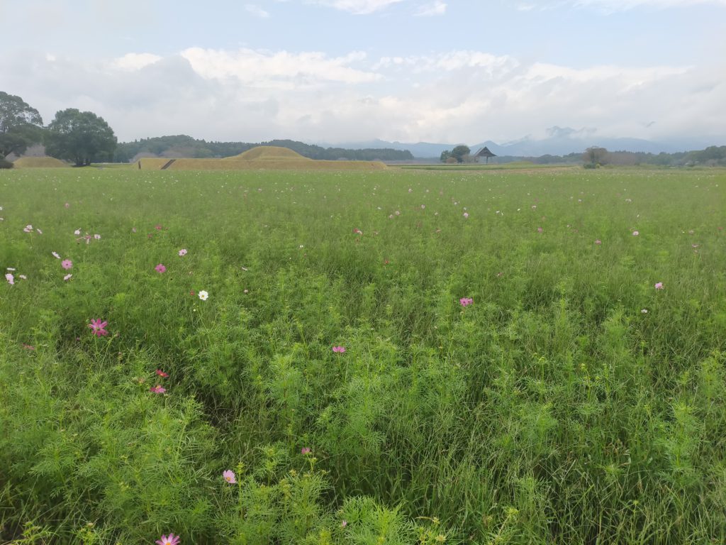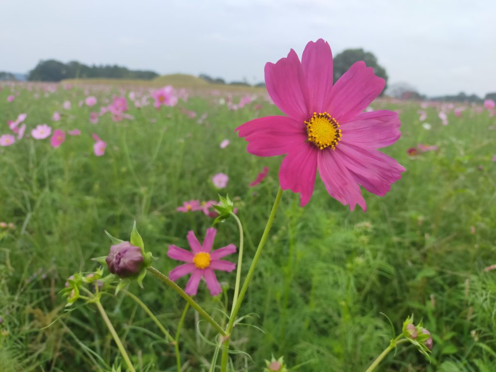 西都原のコスモスはイベント広場周辺では3部咲きほどでその他は1~2部咲き程度です。