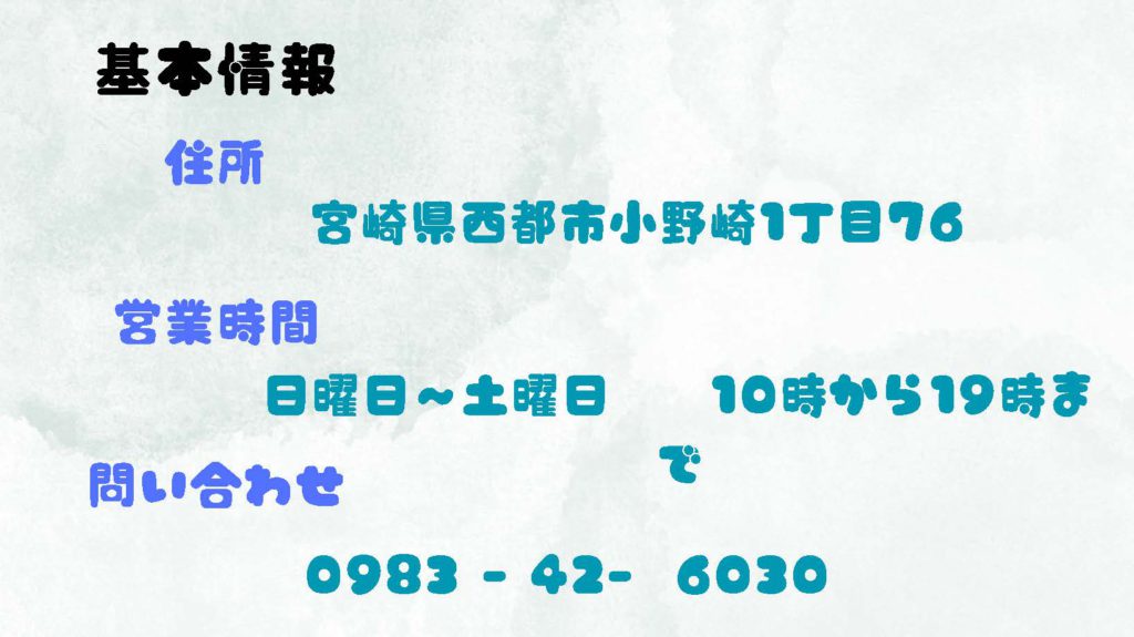 | 住所 | 〒881-0012 宮崎県西都市小野崎1丁目76 西都ショッピングセンター パオ |
