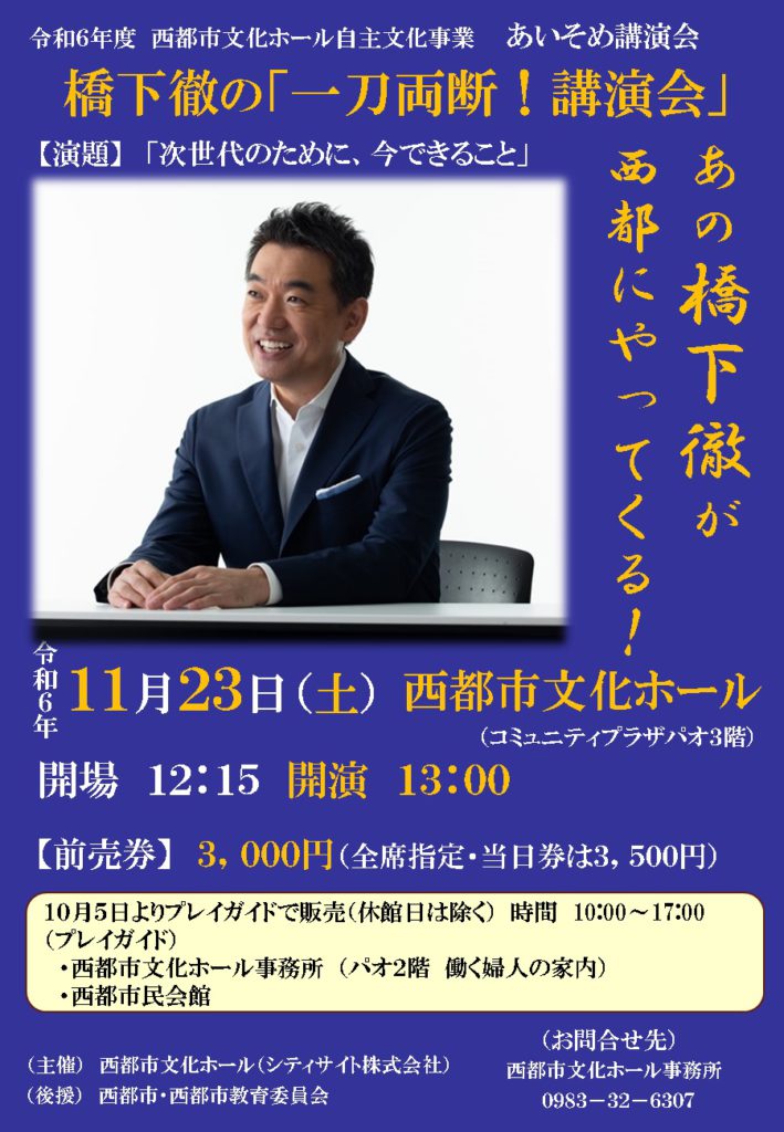 【西都市文化ホール】あいそめ講演会【橋下徹の一刀両断!講演会】開催のお知らせ