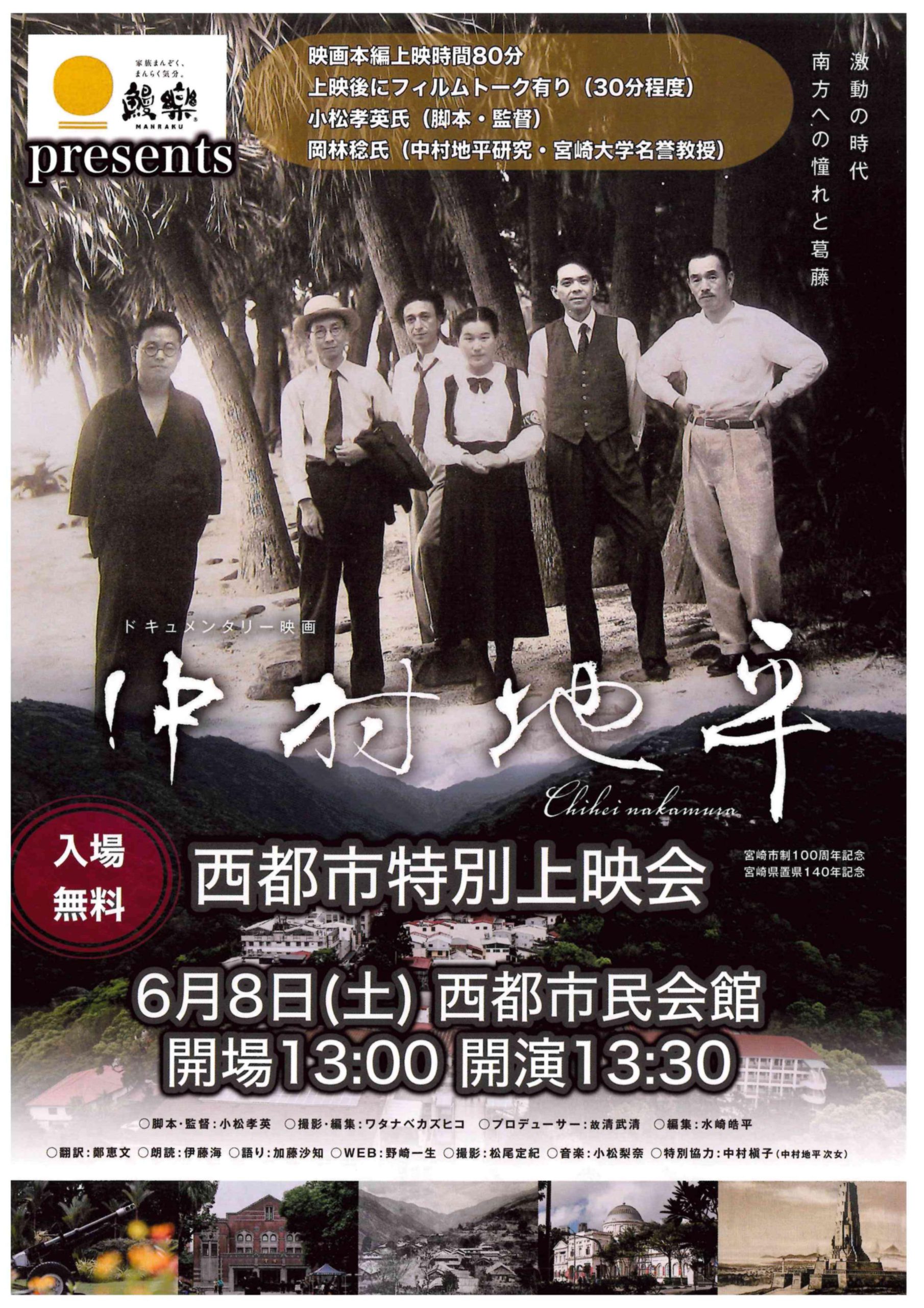 【さいと塩月桃甫顕彰会】ドキュメンタリー映画「中村地平 西都市特別上映会」の開催について
