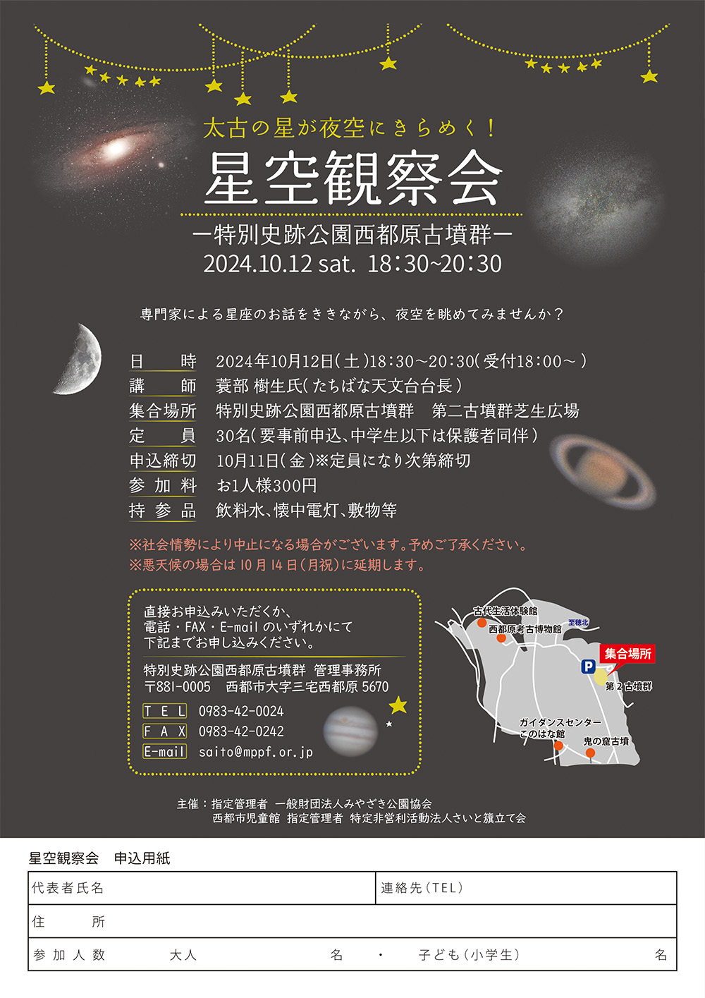 【特別史跡公園西都原古墳群】星空観察会開催のお知らせ