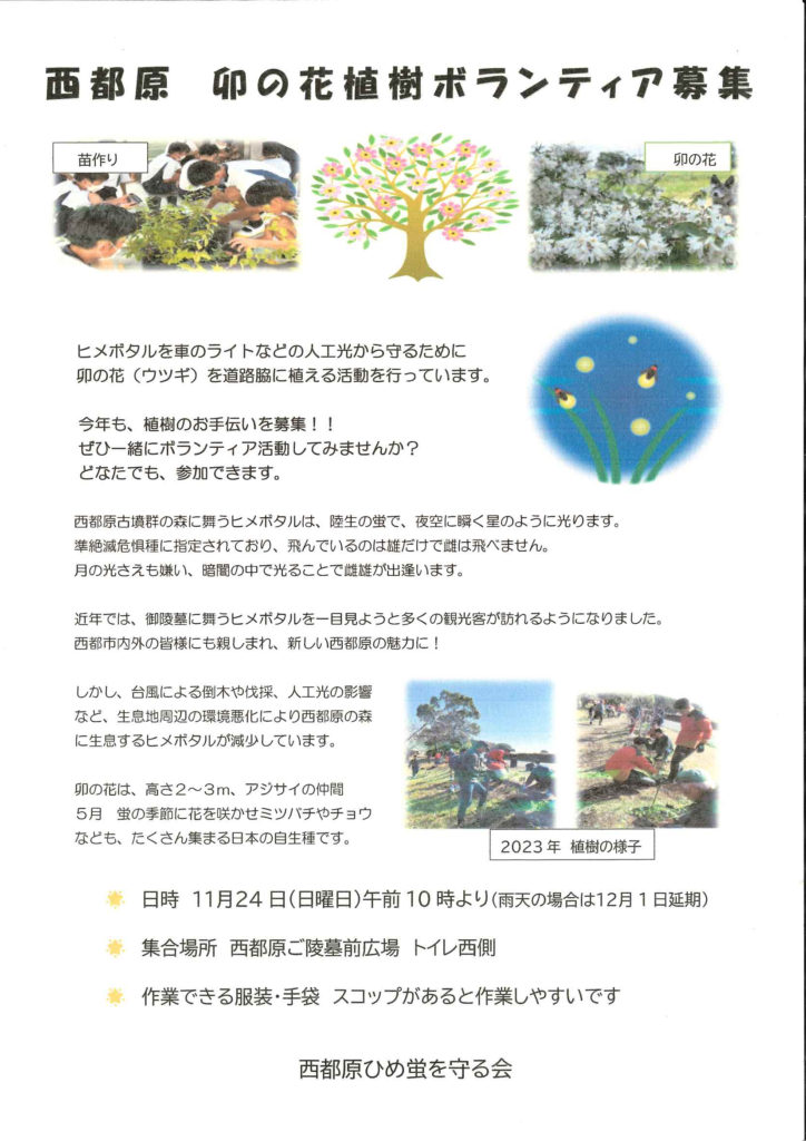 「西都原 卯の花植樹ボランティア募集」のお知らせ
