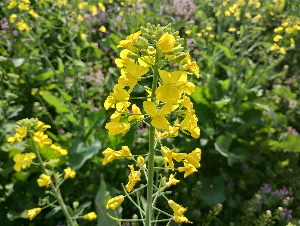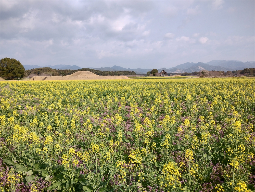 西都原の菜の花は全体的に5部咲き程度で見頃を迎えています。
