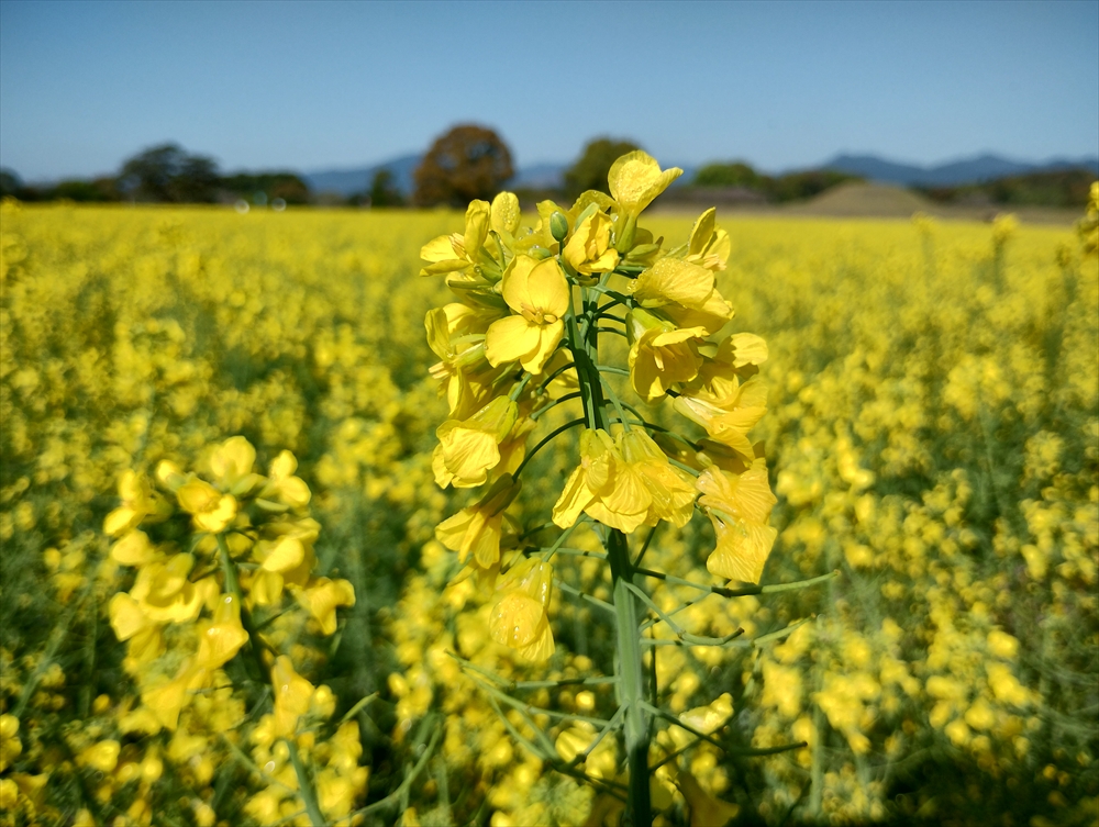 西都原の菜の花は満開で見頃を迎えています。来週より夏のヒマワリ準備の為刈り込みが行われます。