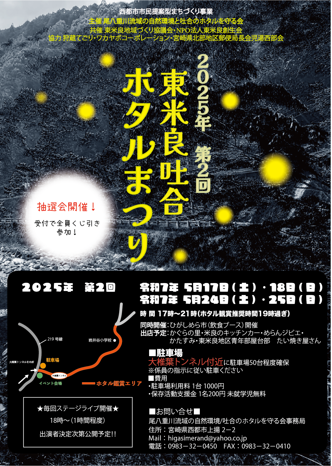 【尾八重川流域の自然環境と吐合のホタルを守る会】「第2回 東米良吐合ホタルまつり」開催のお知らせ