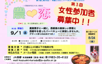 新着情報 NEWS 2018.08.31 西都古墳まつり『炎の祭典』皇子役・オカリナキッズ募集中 西都古墳まつり実行委員会では、炎の祭典に出演していただく皇子役とオカリナキッズを募集しています。 ご... 2018.08.31 西都古墳まつりボランティアスタッフ募集中 西都古墳まつり実行委員会では、まつりの運営を手伝っていただけるボランティアスタッフを募集しています。... 2018.08.30 記紀の道稚児ヶ池の大賀蓮(おおがはす)が開花しました。 記紀の道沿いにある稚児ヶ池で育つ大賀蓮が本日開花しました。 この大賀蓮は2000年前の地層から発見さ... 2018.08.20 西都夏まつりインスタグラムフォトコンテスト展示会開催のお知らせ 先月開催されました西都夏まつりインスタグラムフォトコンテスト入賞作品展示会を明日8月21日(火)から... 2018.08.08 このはな館納涼祭 開催のお知らせ 8月18日(土)18:00から、西都原ガイダンスセンターこのはな館にて『このはな館納涼祭』を開催しま... 2018.08.06 農恋 第3回 女性参加者募集!! 農業男子と一緒に、西都産のおいしい野菜と西都牛を使ったバーベキューに一緒に参加しませんか?デザート作... 2018.07.31 オカリナ太鼓コンサート開催のお知らせ ゲスト ヒダノ修一 スーパーリズミックス橘太鼓「響座」 出演 西都オカリナキッズ西都古墳太鼓保存会オ... 2018.07.31 【刈込】西都原 ひまわり ひ ま わ り 西都原のひまわりは見頃を過ぎた為、全ての畑で刈り込みをはじめました。 現在、コスモス... 2018.07.31 妻駅西地区商店街振興組合 8月さいとナビのお知らせ 妻駅西地区商店街振興組合で作成している「さいとナビ」の8月分が完成しました。今月もお祭りなどのイベン... 2018.07.24 【刈込開始】西都原 ひまわり ひ ま わ り イベント広場周辺のひまわりは見頃を過ぎた為、刈り込みをはじめました。 天候などの影響... 2018.07.23 【開花情報】西都原古墳群ひまわり(7月23日) 西都原古墳群のひまわりは、鬼の窟周辺はまだ見頃です。 このはな館入り口、イベント広場周辺は見頃が過ぎ... 2018.07.20 【開花情報】西都原開花情報について(7月20日) 鬼の窟東側は現在見頃(満開)となっています。 まだ蕾の状態のものもありますので、もうしばらくは楽しむ... « 1 … 54 55 56 57 58 59 60 61 62 63 64 … 83 » ホーム 新着一覧 フォトアルバム 西都市の天気 西都原ガイダンスセンターこのはな館 グリーンツーリズム スポーツランド ニニギくん&コノハナちゃん 年間イベントカレンダー 体験する 観光パンフレット おいでよ花のまち西都市へ 観光ガイド フードデリバリー西都 動画 【宮崎県西都市PR動画】古代ロマン西都 古代人のモニュメント-南国宮崎の古墳景観-(日本語ショート) Instagram 【第38回西都古墳まつり】たいまつ行 さらに読み込む... Instagram でフォロー Facebook 一般社団法人西都市観光協会