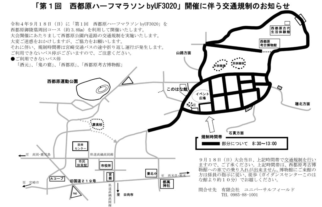 「第1回 西都原ハーフマラソンbyUF3020」開催に伴う交通規制のお知らせ
