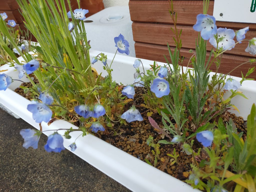 さて、たねダンゴの生育状況ですが、気温が上がった事もあってネモフィラが少しずつ開花してきました。