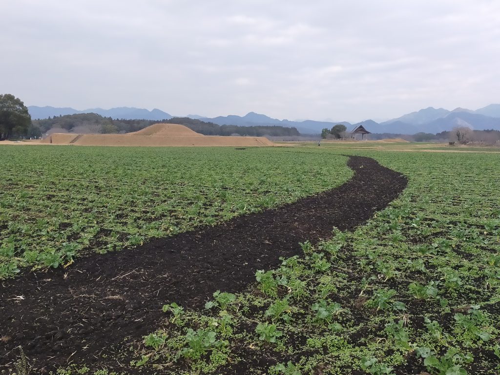 ダイコンの仲間である西都原の菜の花も寒さに負けず順調に育っています。