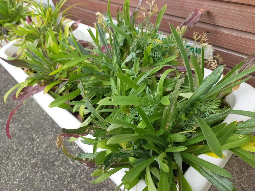 さて、観光協会事務所前で育てているたねダンゴは、葉先が霜の影響を受け黒ずんでいる箇所もありましたが、殆どが元気な緑色をしており株も大きく育っています。