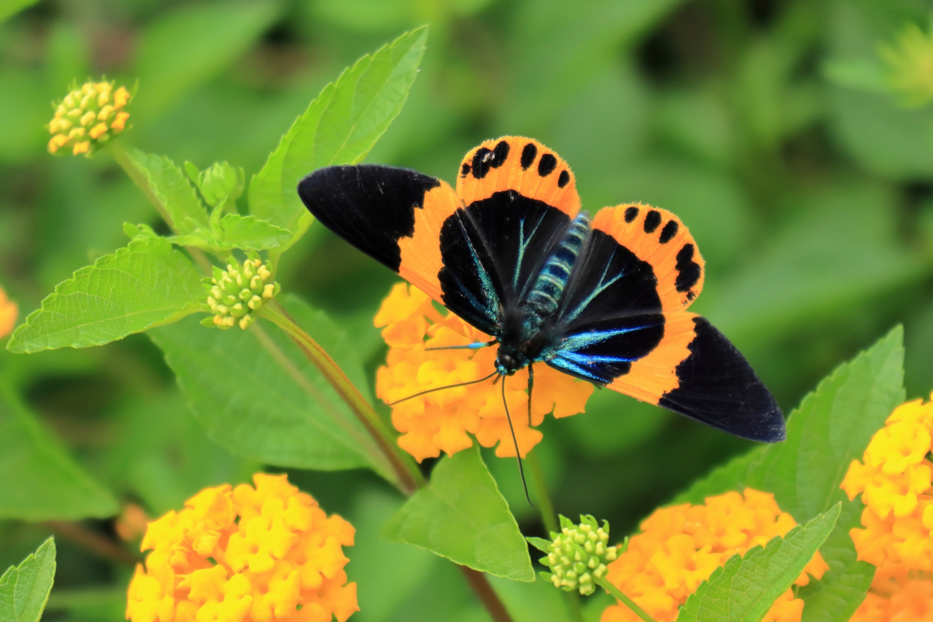 キオビエダシャクの成虫は、全体的に濃い紺色で、羽に黄色の帯があるのが特徴的な蛾です。