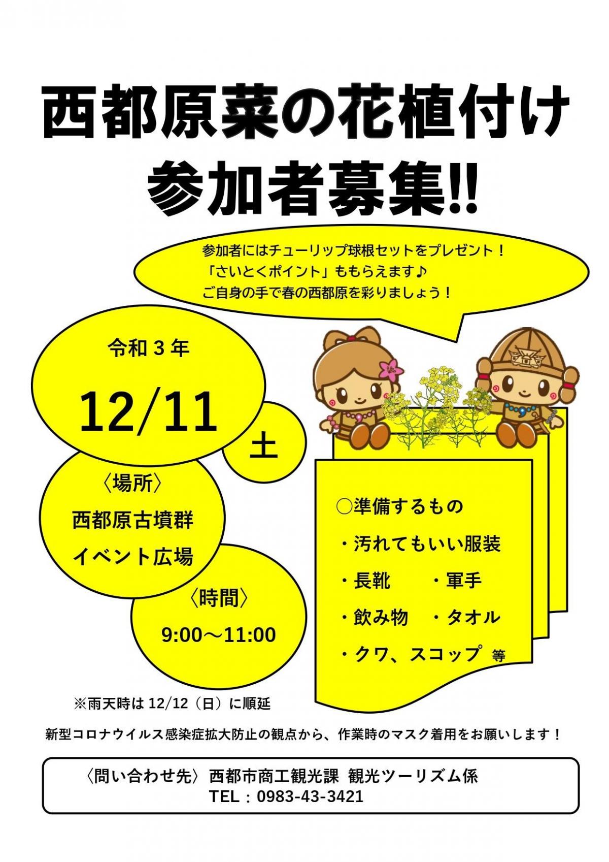 「西都原菜の花植付け作業」ボランティア参加者募集!