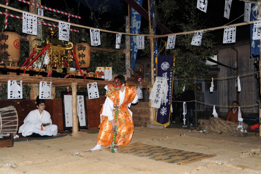 五穀豊穣、豊猟(漁)、安全と健康などに感謝し、1年の安定を祈り舞われる神楽