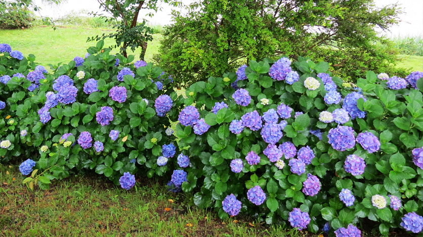 梅雨時に咲き誇る色鮮やかなアジサイ