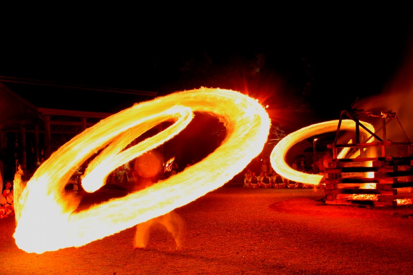 勇壮な武人と優雅な女人の舞の炎の祭典